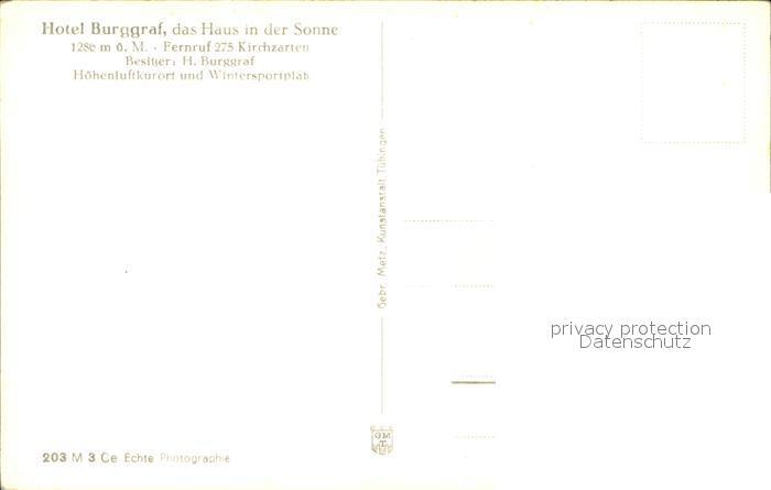 41687905 Schauinsland Hotel Burggraf postalisch nicht gelaufen Erhaltung siehe scans KatCode: 11110008315084