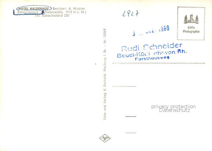 73759448 Schauinsland Hotel Haldenhof postalisch nicht gelaufen Erhaltung siehe scans [FriedD77] KatCode: 11110008315084
