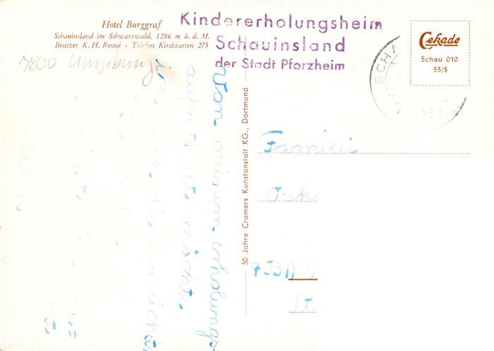 73932275 alte Postkarte Schauinsland Oberried BW Bergbahn Fliegeraufnahme Windgetriebene Hotel Burggraf Buchen Roter Salon Restaurant postalisch gelaufen Erhaltung siehe scans [WerneD78] KatCode: 11110008315084