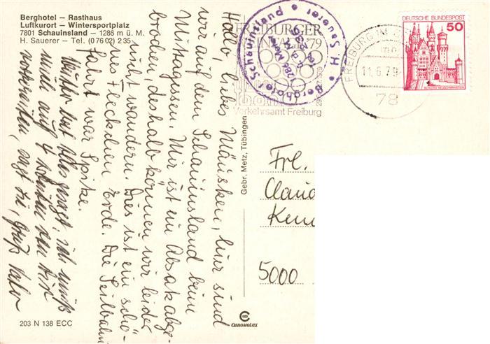 73932282 alte Postkarte Schauinsland Oberried BW Berghotel Rasthaus Terrasse postalisch gelaufen Erhaltung siehe scans [WerneD78] KatCode: 11110008315084