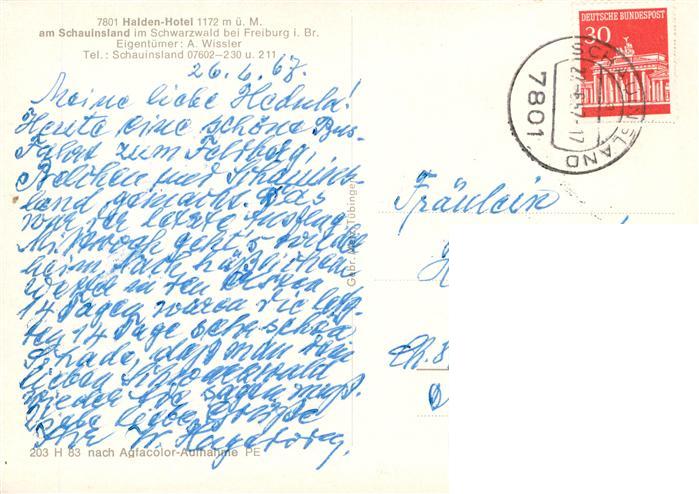 73932794 alte Postkarte Schauinsland Oberried BW Halden Hotel postalisch gelaufen Erhaltung siehe scans [WerneD78] KatCode: 11110008315084