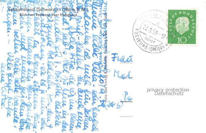 74153434 alte Postkarte Schauinsland Oberried BW Panorama Blick zum Feldberg ueber Hofsgrund Schwarzwald postalisch gelaufen Erhaltung siehe scans [FriedD77] KatCode: 11110008315084