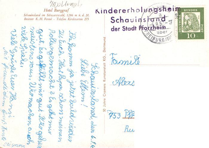 73932768 alte Postkarte Schauinsland Oberried BW Schauinslandbahn Hotel Burggraf Windgetriebene Buchen Roter Salon Restaurant postalisch gelaufen Erhaltung siehe scans [WerneD78] KatCode: 11110008315084