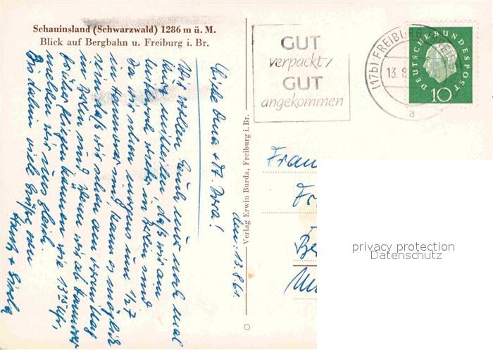 72627571 alte Postkarte Schauinsland Panorama Blick auf Bergbahn Schwarzwald und Freiburg Breisgau postalisch gelaufen Erhaltung siehe scans [FriedD77] KatCode: 11110008315084