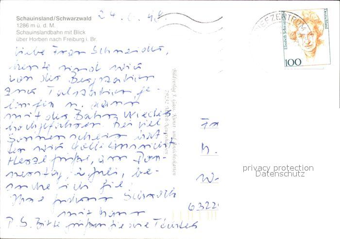 71940359 alte Postkarte Schauinsland Schauinslandbahn Horben nach Freiburg postalisch gelaufen Erhaltung siehe scans KatCode: 11110008315084