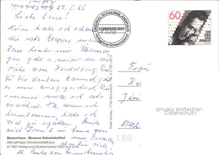 72329451 alte Postkarte Schauinsland Schniederlihof Bauernhaus Museum 300jaehriges Schwarzwaldhaus postalisch gelaufen Erhaltung siehe scans KatCode: 11110008315084