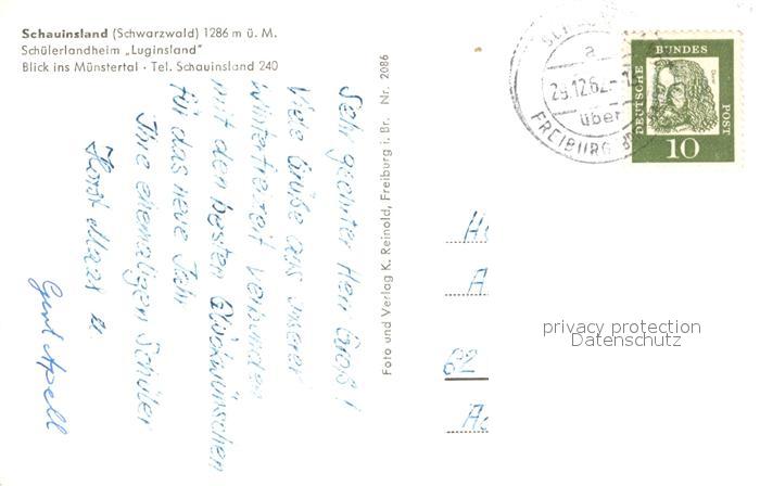 73160450 alte Postkarte Schauinsland Schuelerlandheim Luginsland postalisch gelaufen Erhaltung siehe scans [LiesaD40] KatCode: 11110008315084