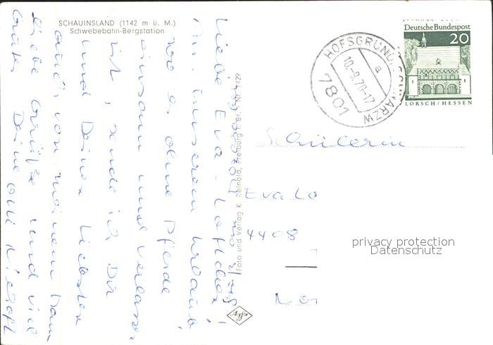 71924963 alte Postkarte Schauinsland Schwebebahn postalisch gelaufen Erhaltung siehe scans KatCode: 11110008315084