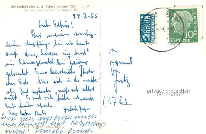 73764467 alte Postkarte Schauinsland Schwebebahn postalisch gelaufen Erhaltung siehe scans [WerneD78] KatCode: 11110008315084