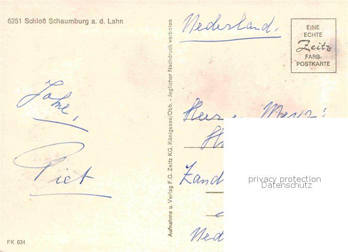 72865100 Schaumburg Diez Schloss postalisch nicht gelaufen Erhaltung siehe scans [LiesaD40] KatCode: 11110007141029