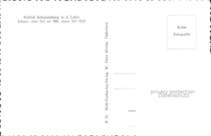 72200203 Schaumburg Diez Schloss Schaumburg postalisch nicht gelaufen Erhaltung siehe scans KatCode: 11110007141029