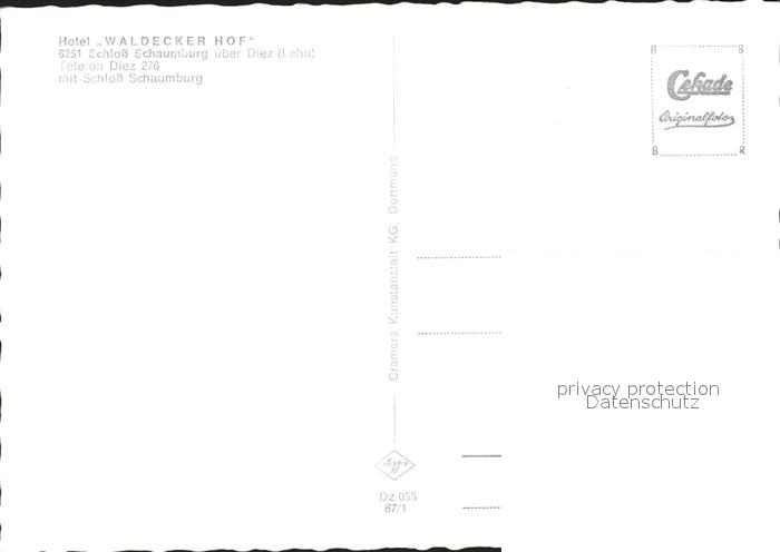 72202665 Schaumburg Diez Schloss Schaumburg Hotel Waldecker Hof postalisch nicht gelaufen Erhaltung siehe scans KatCode: 11110007141029
