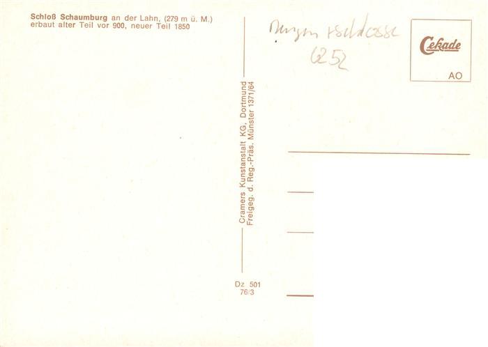 73936239 Schaumburg Schloss Balduinstein Schloss Schaumburg an der Lahn postalisch nicht gelaufen Fliegeraufnahme Erhaltung siehe scans [FriedD77] Fliegeraufnahme Frie Katcode 11110007141503