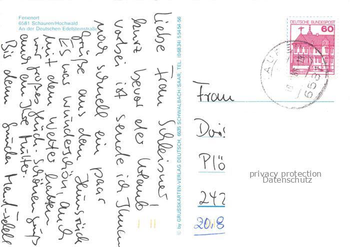 74042574 alte Postkarte Schauren Nahe Birkenfeld Rheinland-Pfalz Panorama Ferienort an der Deutschen Edelsteinstrasse Kirche Innenansicht postalisch gelaufen Erhaltung siehe scans [FriedD77] KatCode: 11110007134076
