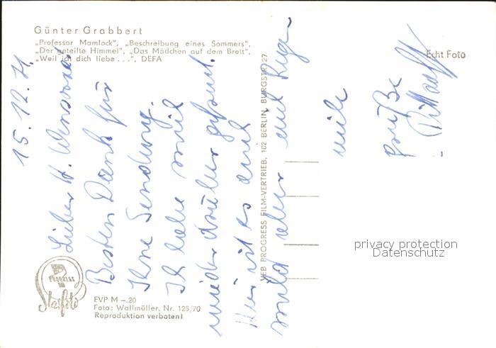 Schauspieler Guenter Grabbert postalisch nicht gelaufen Erhaltung siehe scans [PaolaD17]
