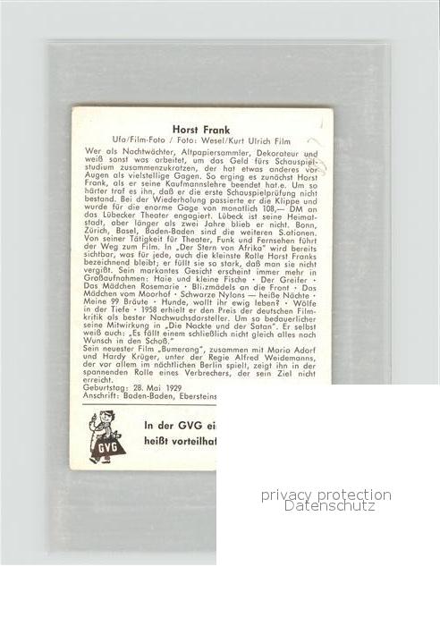 11547488 Schauspieler Horst Frank Autogramm KatCode 22560000001600