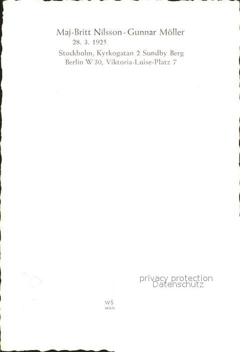 Schauspieler Maj-Britt Nilsson-Gunnar Moeller postalisch nicht gelaufen Erhaltung siehe scans