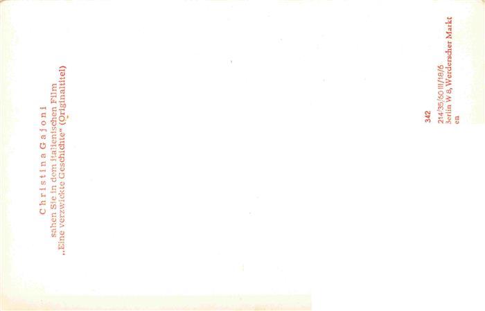 74025236 SchauspielerIN Actor Acteur Actrice Attore Attrice– Christina Gajoni Progress postalisch nicht gelaufen Erhaltung siehe scans [SanaeD93] KatCode: 22560000001600