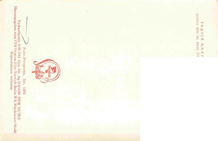 74025222 SchauspielerIN Actor Acteur Actrice Attore Attrice– Ingrid Andree Horst Buchholz Progress Film postalisch nicht gelaufen Erhaltung siehe scans [SanaeD93] KatCode: 22560000001600