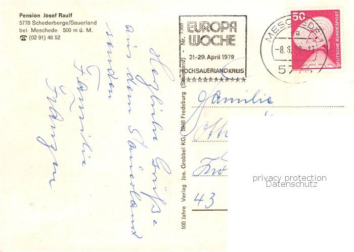 73838052 alte Postkarte Schederberge Pension Josef Raulf postalisch gelaufen Erhaltung siehe scans [FriedD77] KatCode: 11110005958032