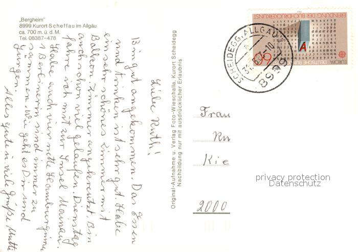73609426 alte Postkarte Scheffau Scheidegg Bergheim Blumenwiesen Allgaeuer Alpen postalisch gelaufen Erhaltung siehe scans [FriedD77] KatCode: 11110009776125