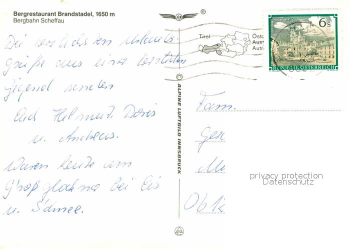 72818247 alte Postkarte Scheffau Wilden Kaiser Bergrestaurant Brandstadel Bergbahn postalisch gelaufen Erhaltung siehe scans [LiesaD40] KatCode: 11390335070524