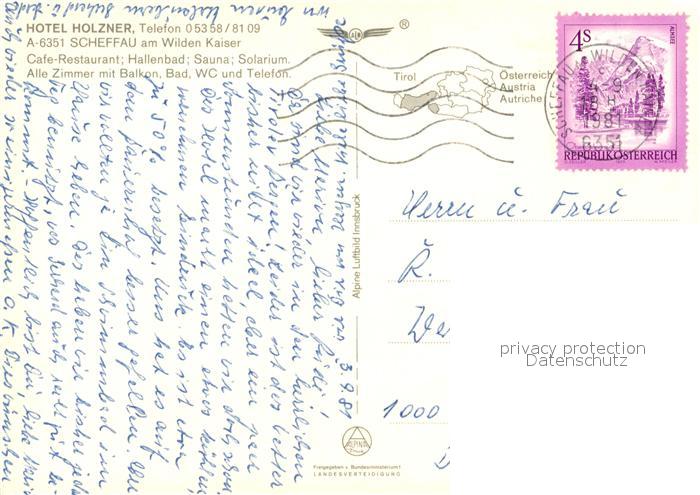 73185172 alte Postkarte Scheffau Wilden Kaiser Fliegeraufnahme Hotel Holzner postalisch gelaufen Erhaltung siehe scans [LiesaD40] KatCode: 11390335070524