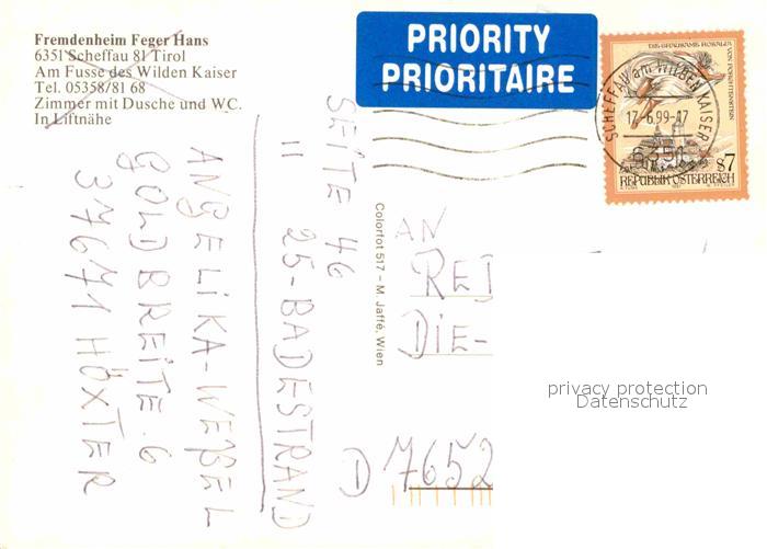 72707093 alte Postkarte Scheffau Wilden Kaiser Fremdenheim Feger Haus postalisch gelaufen Erhaltung siehe scans [WerneD78] KatCode: 11390335070524