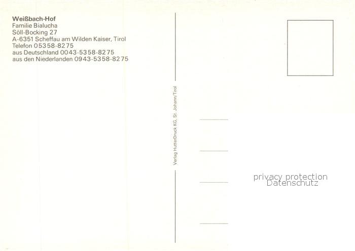 73363548 Scheffau Wilden Kaiser Gaestehaus Pension Weissbach Hof Kaisergebirge postalisch nicht gelaufen Erhaltung siehe scans [FriedD77] KatCode: 11390335070524
