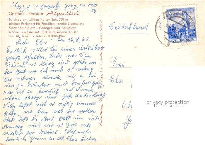 12637348 alte Postkarte Scheffau Wilden Kaiser Gasthaus Pension Alpenblick postalisch gelaufen Erhaltung siehe scans [LiesaD40] KatCode: 11390335070524