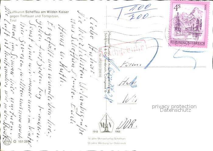 72360004 alte Postkarte Scheffau Wilden Kaiser mit Treffauer und Toerlspitzen postalisch gelaufen Erhaltung siehe scans KatCode: 11390335070524