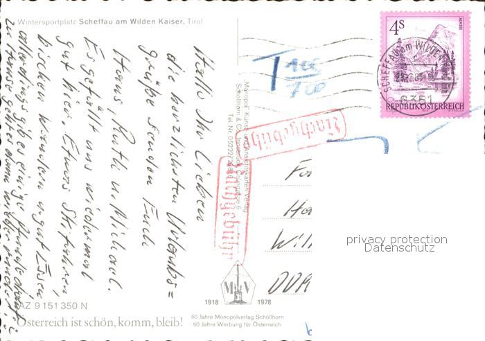 72367789 alte Postkarte Scheffau Wilden Kaiser Ortsansicht postalisch gelaufen Erhaltung siehe scans KatCode: 11390335070524