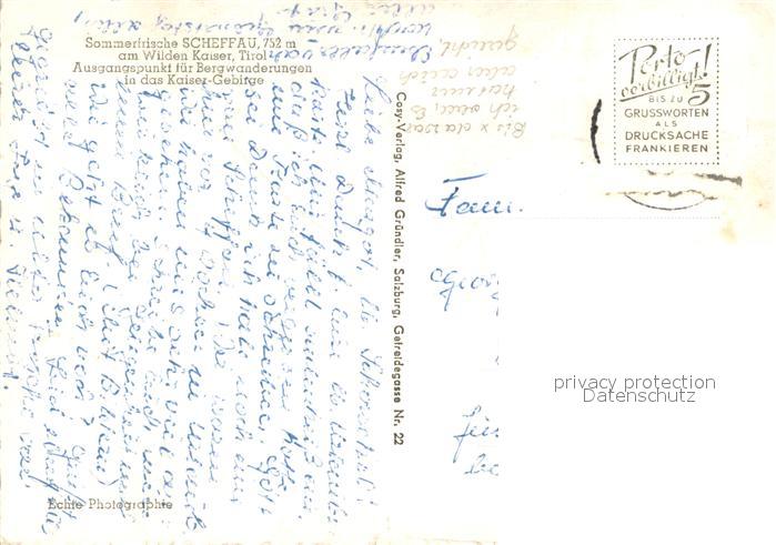 73645315 alte Postkarte Scheffau Wilden Kaiser Sommerfrische Panorama Kaisergebirge postalisch gelaufen Erhaltung siehe scans [FriedD77] KatCode: 11390335070524