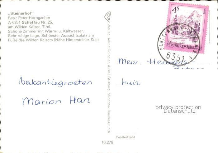 72434980 alte Postkarte Scheffau Wilden Kaiser Steinerhof postalisch gelaufen Erhaltung siehe scans KatCode: 11390335070524