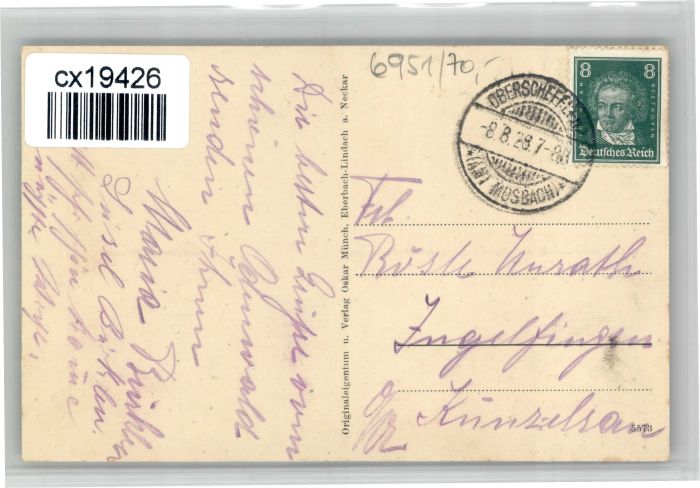 30725787 alte Postkarte Schefflenz postalisch gelaufen KatCode: 11110008225115