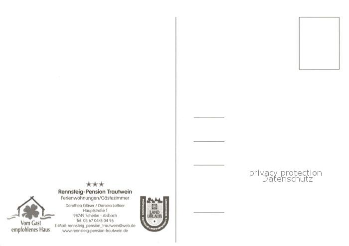 73335006 Scheibe-Alsbach Rennsteig Pension Trautwein postalisch nicht gelaufen Erhaltung siehe scans [LiesaD40] KatCode: 11110016072016