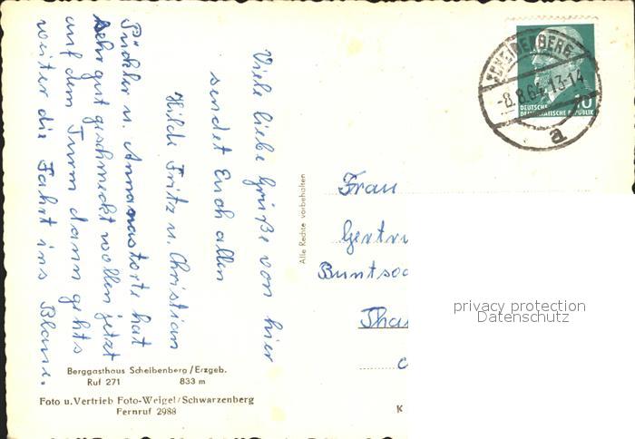 72341710 alte Postkarte Scheibenberg Berggasthaus Aussichtsturm postalisch gelaufen Erhaltung siehe scans KatCode: 11110014171250
