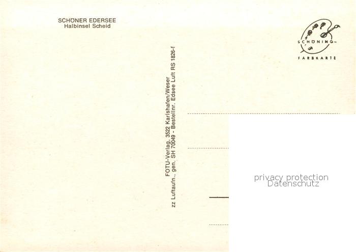 73160798 Scheid Hessen Fliegeraufnahme Schoener Edersee postalisch nicht gelaufen Erhaltung siehe scans [KathaD81] KatCode: 11110006635021