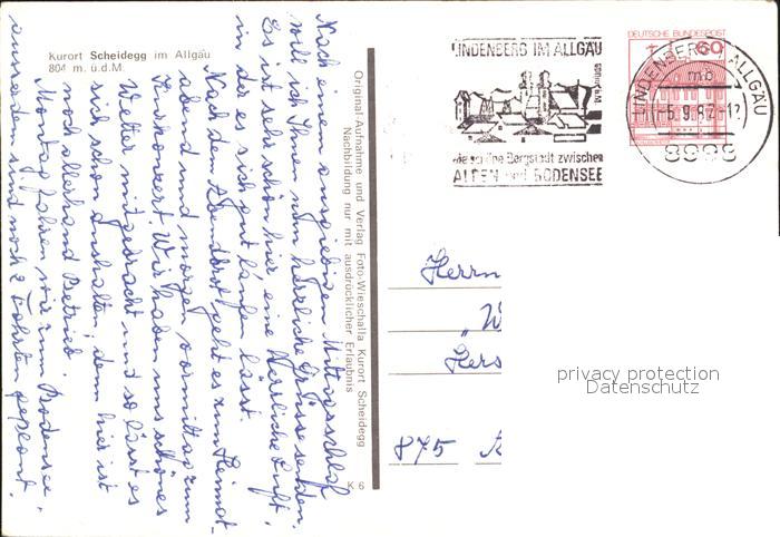 72258109 alte Postkarte Scheidegg Allgaeu postalisch gelaufen Erhaltung siehe scans KatCode: 11110009776125