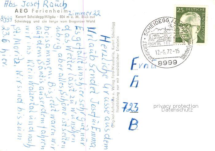 73549285 alte Postkarte Scheidegg Allgaeu AEG Ferienheim postalisch gelaufen Erhaltung siehe scans [WerneD78] KatCode: 11110009776125