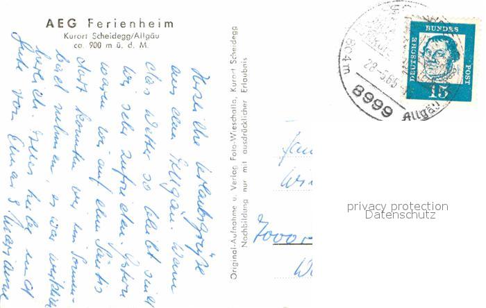 72811721 alte Postkarte Scheidegg Allgaeu AEG Ferienheim postalisch gelaufen Erhaltung siehe scans [FriedD77] KatCode: 11110009776125