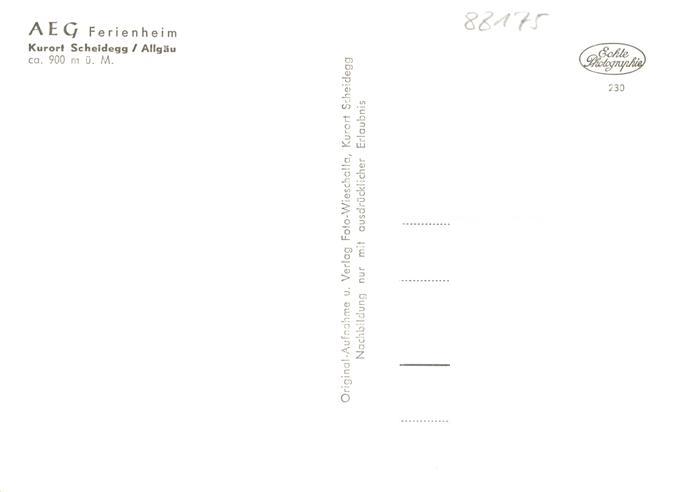 73884509 Scheidegg Allgaeu AEG Ferienheim postalisch nicht gelaufen Erhaltung siehe scans [WerneD78] KatCode: 11110009776125