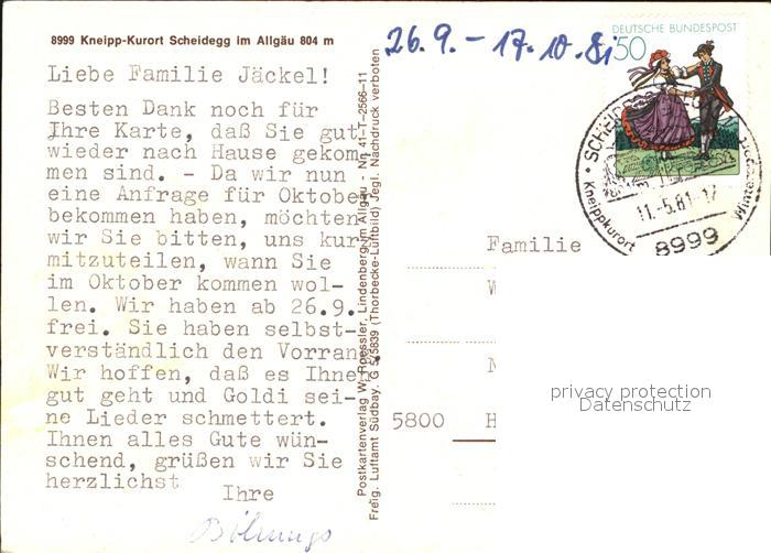 72568423 alte Postkarte Scheidegg Allgaeu Alpen Kurort postalisch gelaufen Erhaltung siehe scans [KathaD79] KatCode: 11110009776125