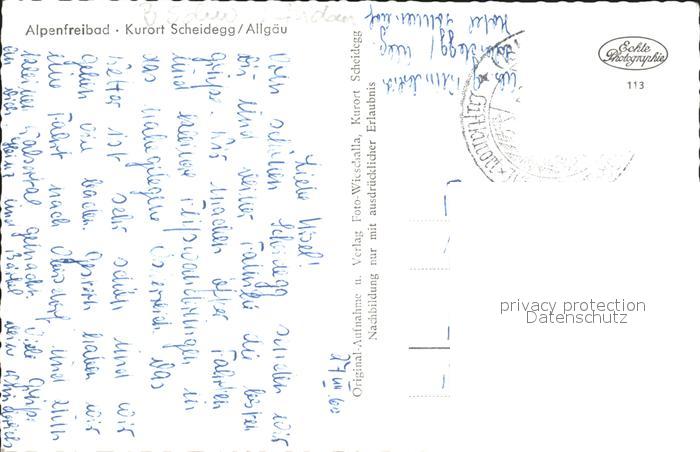 72228055 alte Postkarte Scheidegg Allgaeu Alpenfreibad Blick auf die Alpenkette postalisch gelaufen Erhaltung siehe scans KatCode: 11110009776125