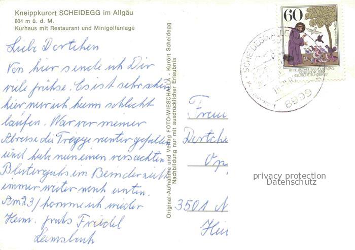 74038026 alte Postkarte Scheidegg Allgaeu Bayern Kurhaus mit Restaurant und Minigolfanlage postalisch gelaufen Erhaltung siehe scans [WerneD78] KatCode: 11110009776125