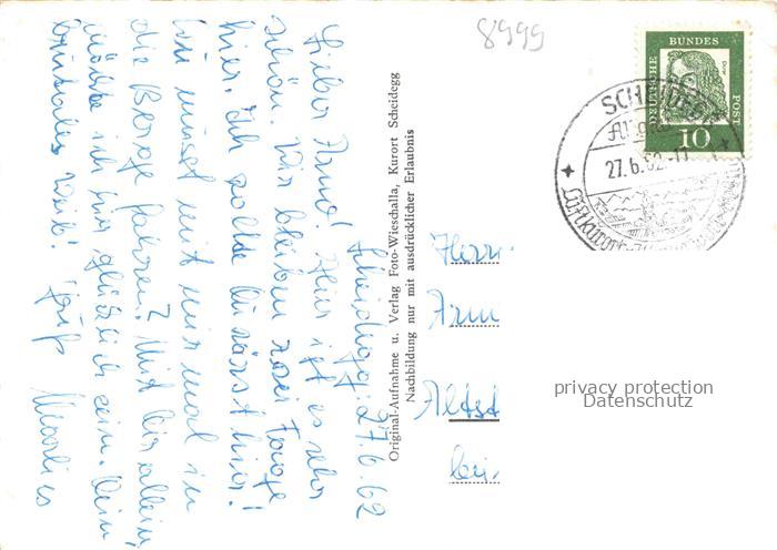 74101654 alte Postkarte Scheidegg Allgaeu Bayern Panorama Fliegeraufnahme Kirche Stadion postalisch gelaufen Erhaltung siehe scans [WerneD78] KatCode: 11110009776125
