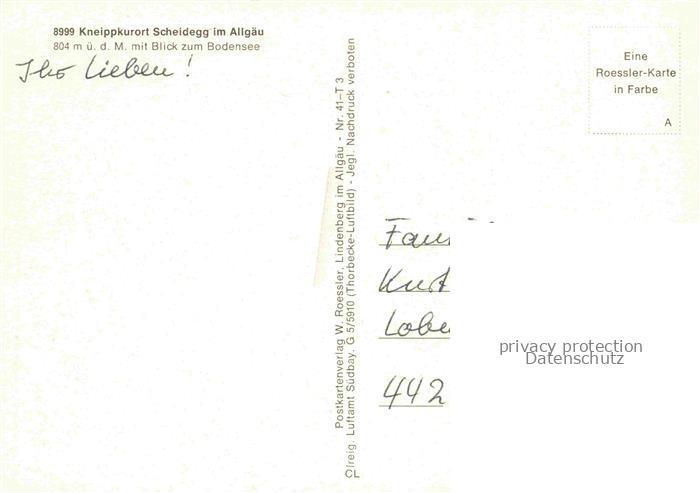 74076374 Scheidegg Allgaeu Bayern Panorama Kneippkurort Blick zum Bodensee postalisch nicht gelaufen Fliegeraufnahme Erhaltung siehe scans [FriedD77] KatCode: 11110009776125