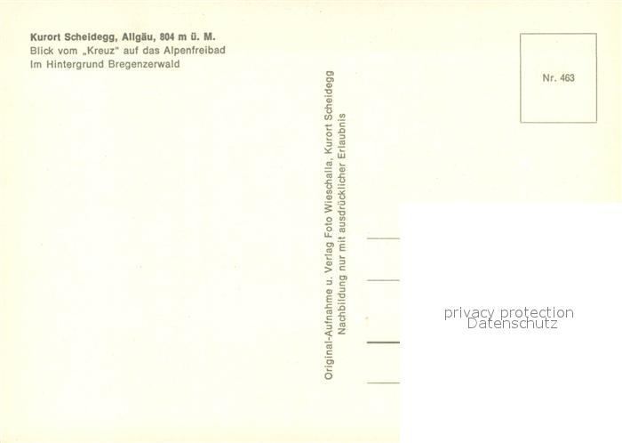 73597231 Scheidegg Allgaeu Blick vom Kreuz auf das Alpenfreibad mit Bregenzerwald postalisch nicht gelaufen Erhaltung siehe scans [WerneD78] KatCode: 11110009776125
