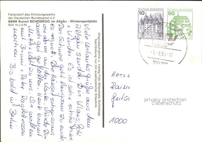 72583363 alte Postkarte Scheidegg Allgaeu Feriendorf postalisch gelaufen Erhaltung siehe scans [LiesaD40] KatCode: 11110009776125