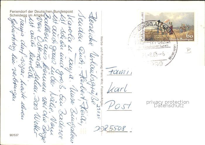72579412 alte Postkarte Scheidegg Allgaeu Feriendorf der Deutschen Bundespost postalisch gelaufen Erhaltung siehe scans [FriedD77] KatCode: 11110009776125